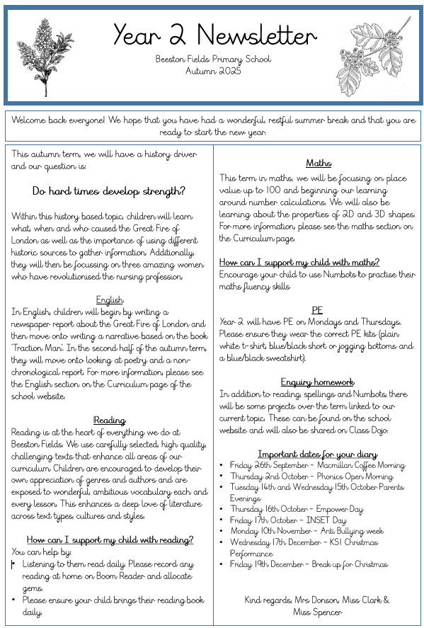 Lilac Class is taught by Mrs Donson (Monday to Wednesday) and Miss Clark (Thursday and Friday).