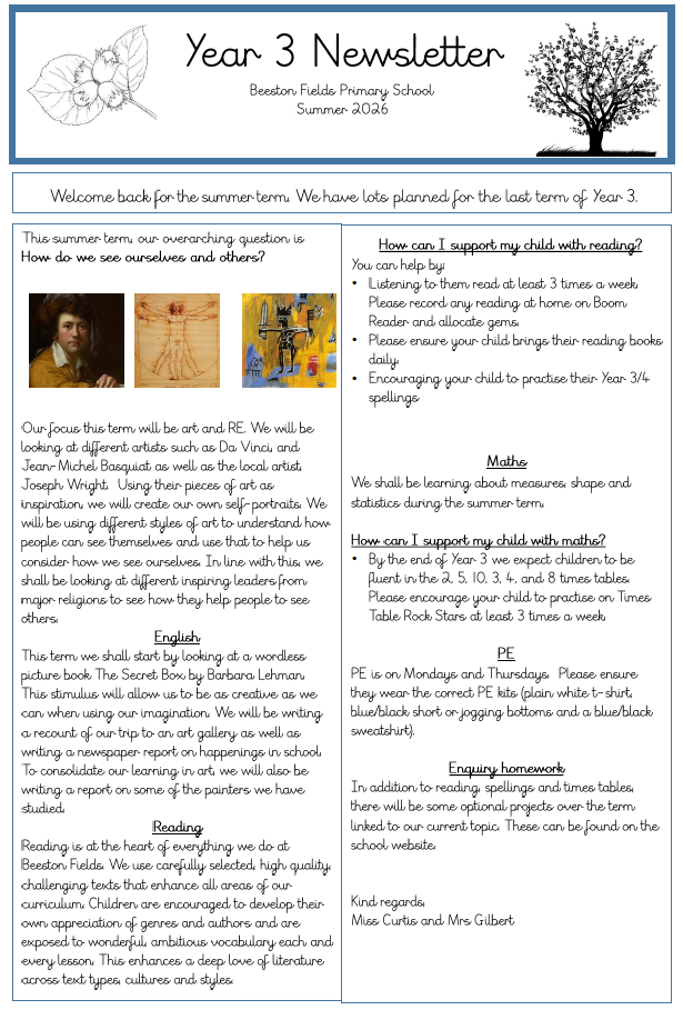 There are two classes in Year 3. Cherry class teacher is Miss Curtis and Hazel class teacher is Mrs Gilbert.